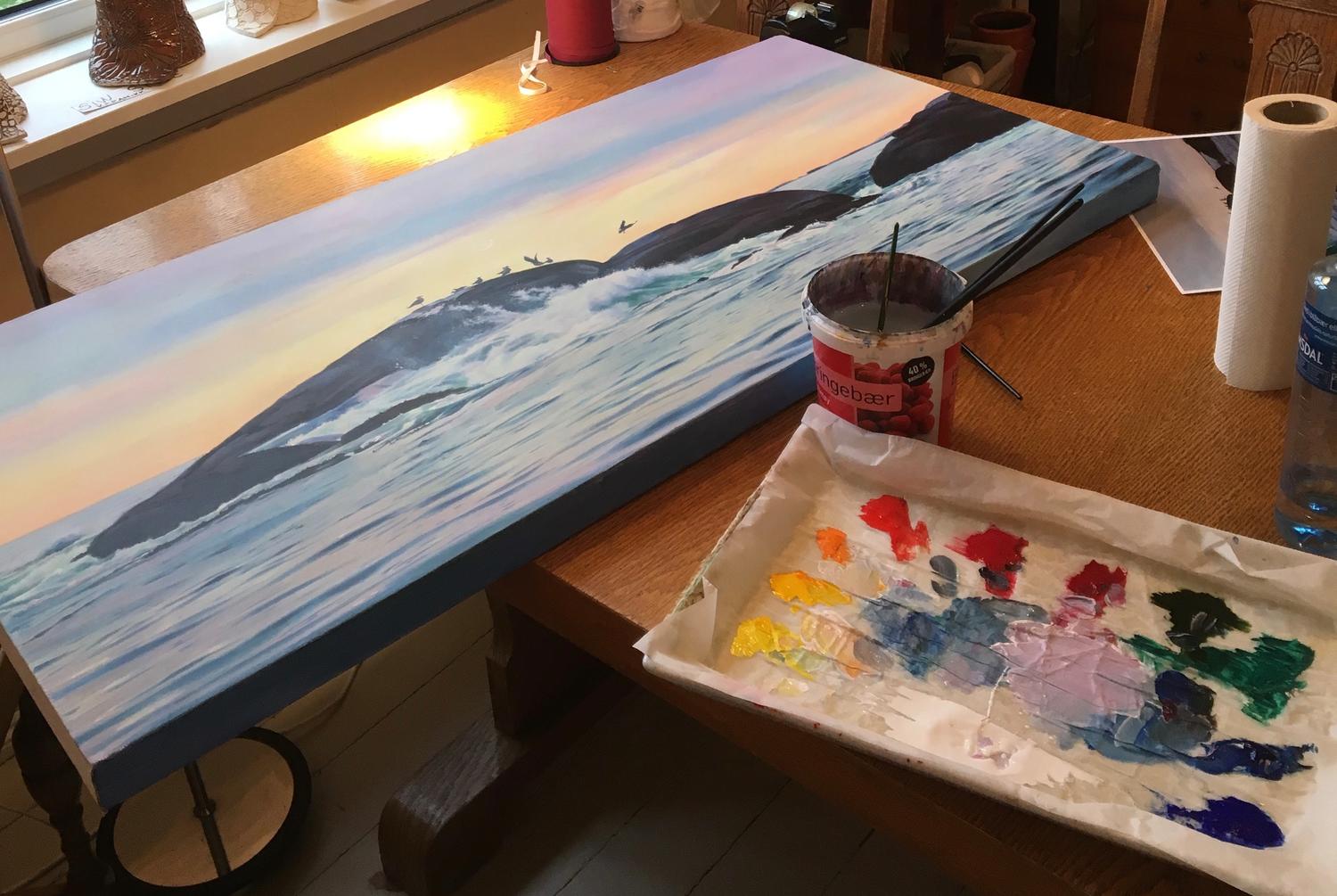 Mange forteller meg at dei blir frustrert over akrylmalingen. Den tørker for fort og dei strever med å få det til.